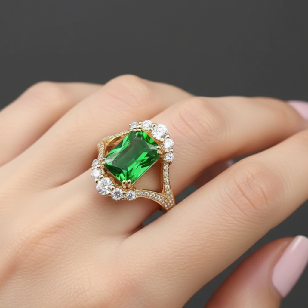 Elegantní prsten se smaragdem