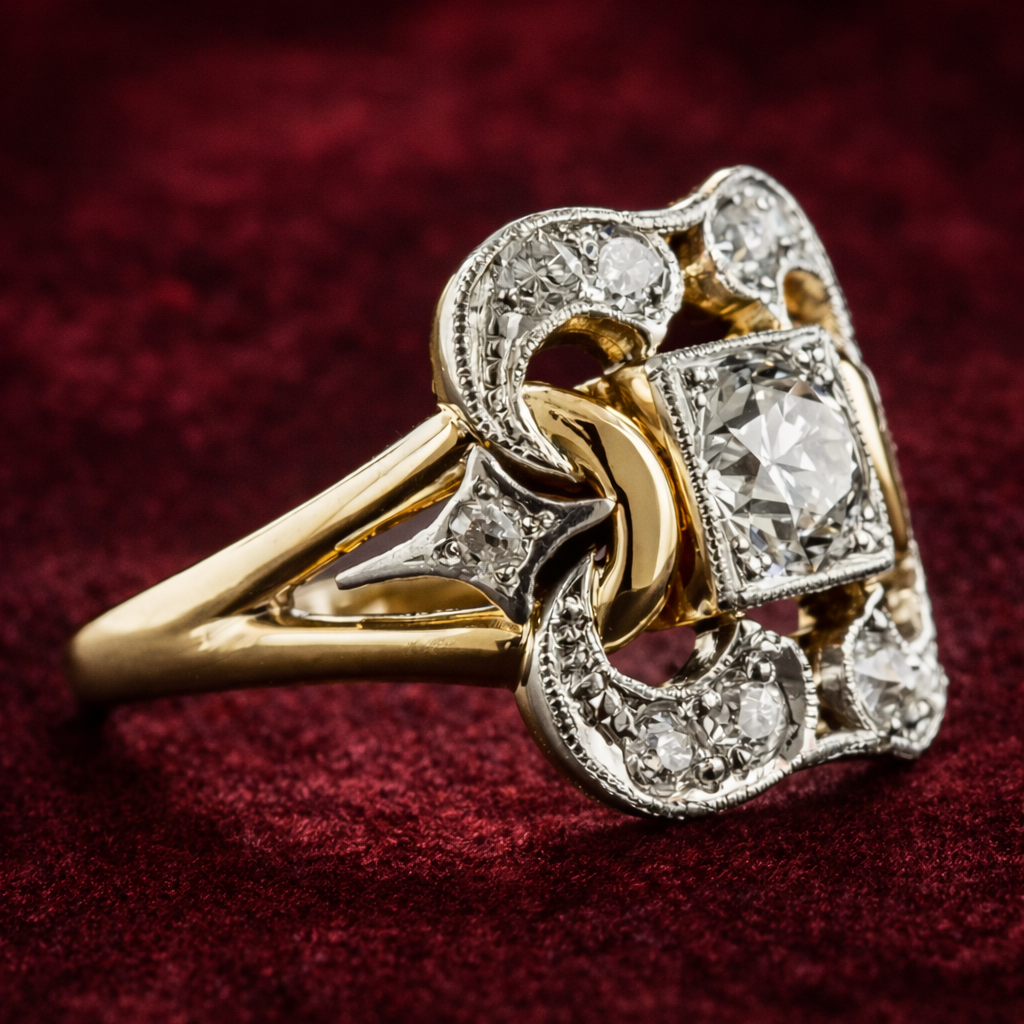 Elegantní vintage zlatý prsten zirkonie