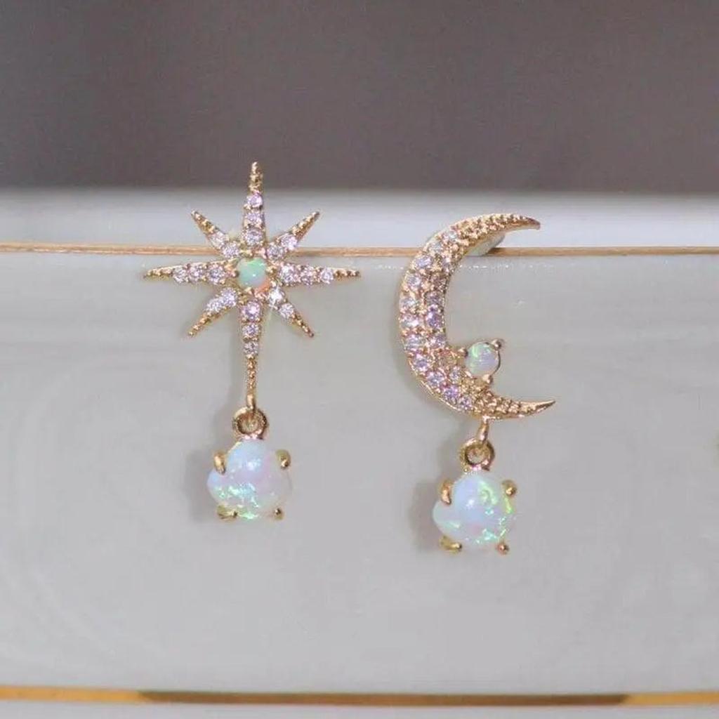 Náušnice měsíc hvězda zlato opál