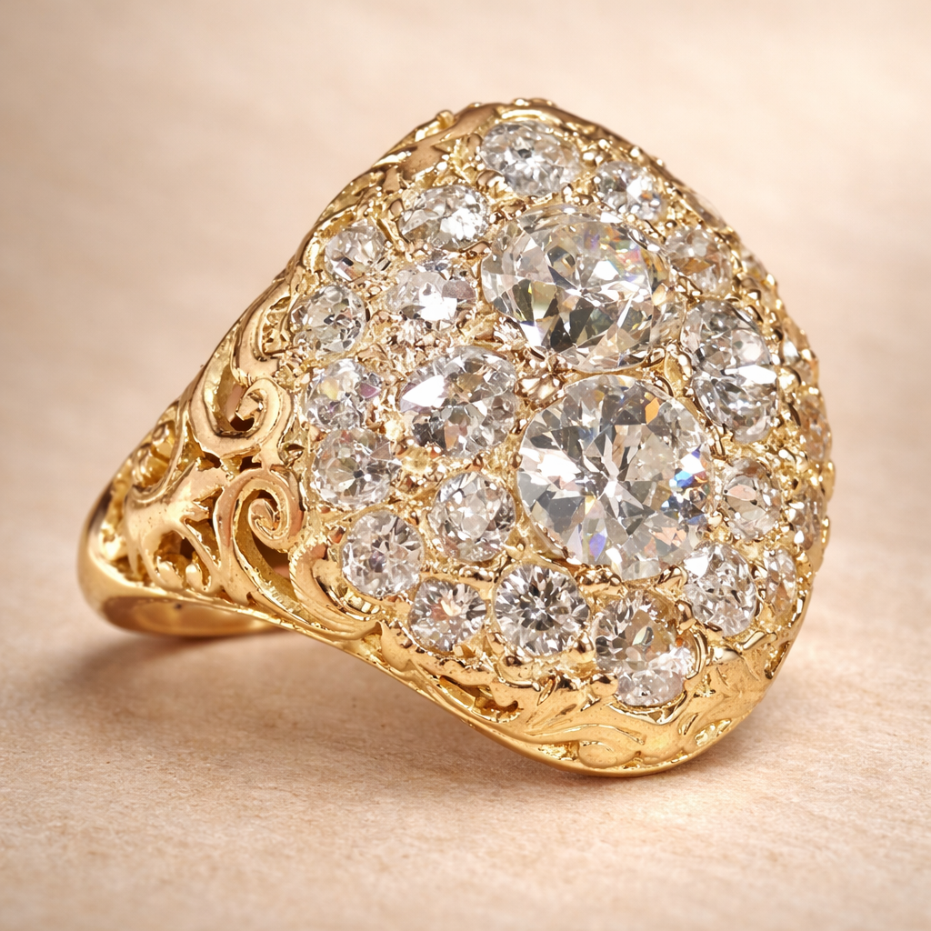 Retro stříbrný červený prsten diamant