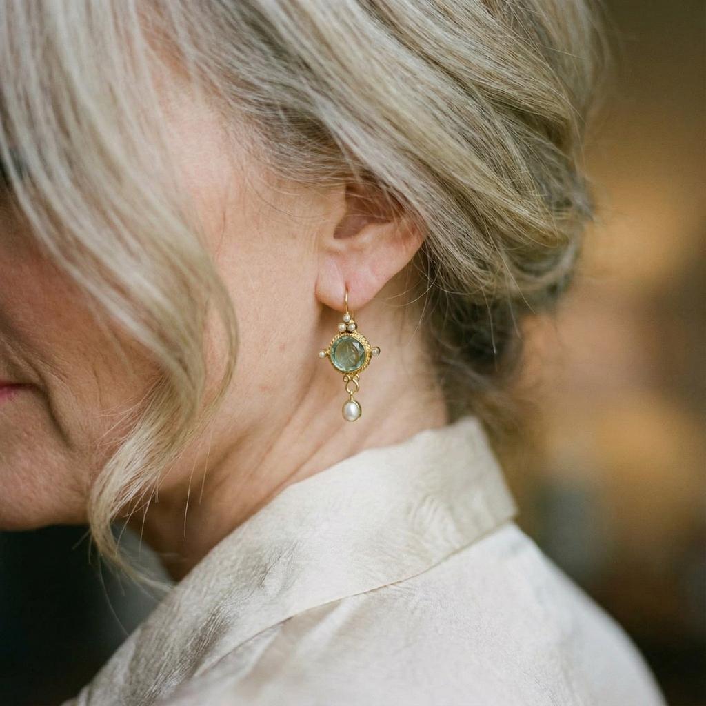 Vintage náušnice modré sklo a perla