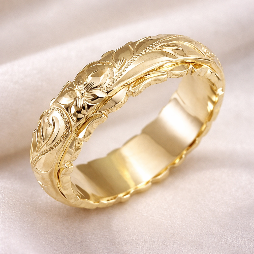 Vintage zlatý prsten s květinou