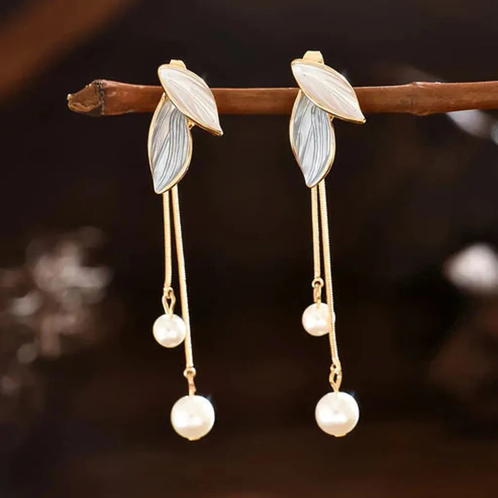 Hangende Oorbellen in Bladvorm met Parel