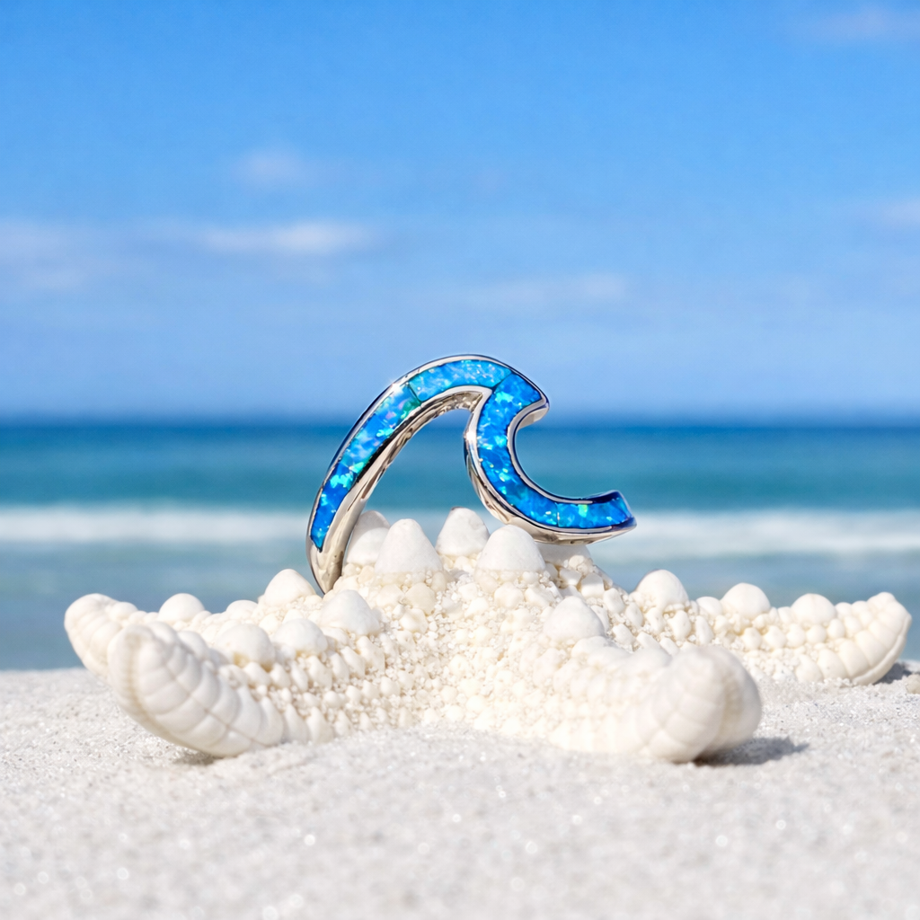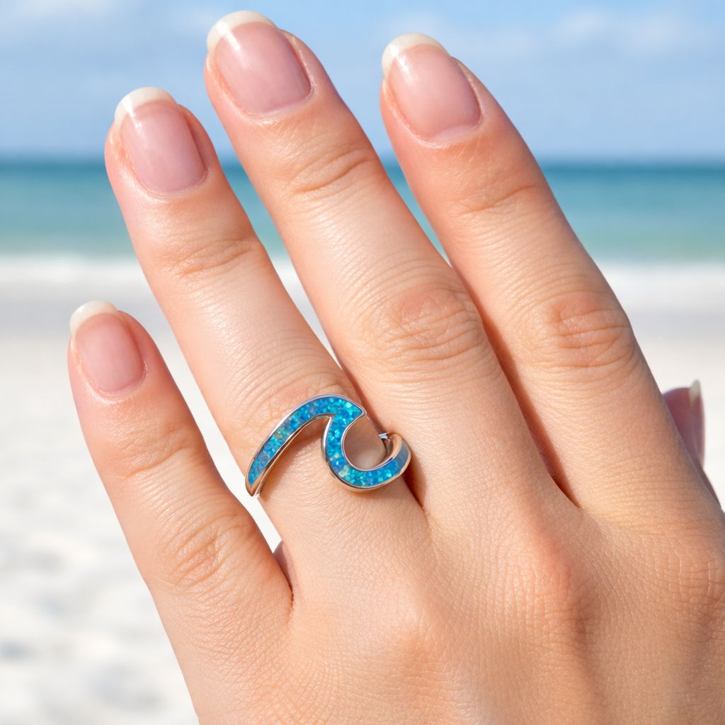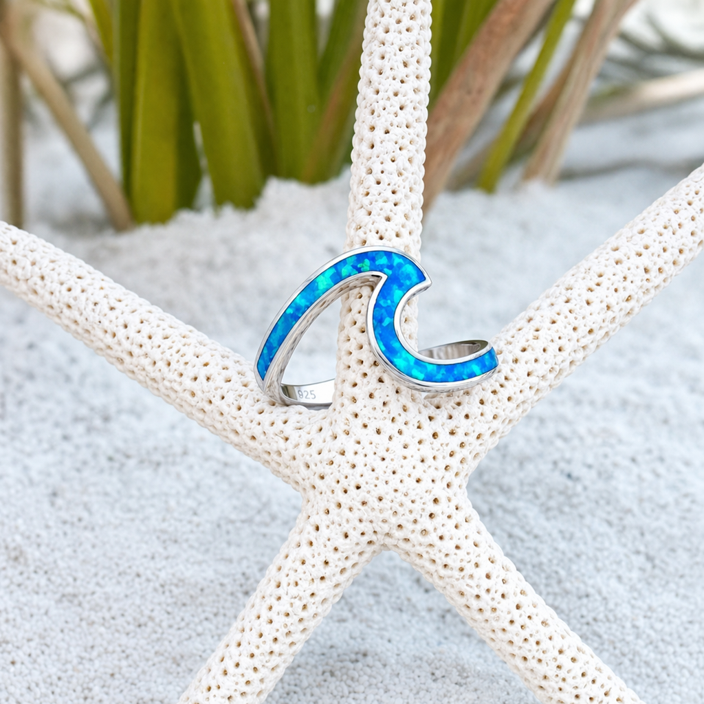 Prsten moře opál a stříbro
