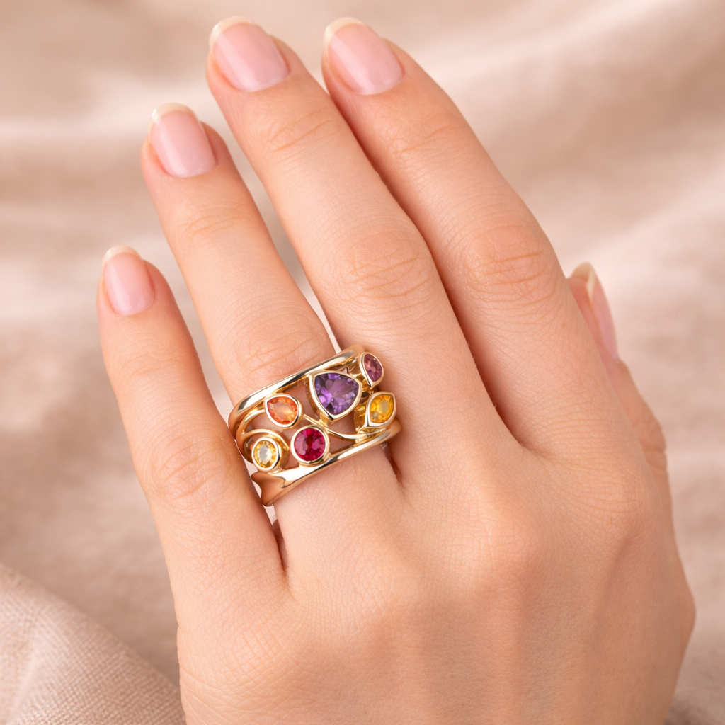 Retro prsten zlato stříbro barevná zirkonie