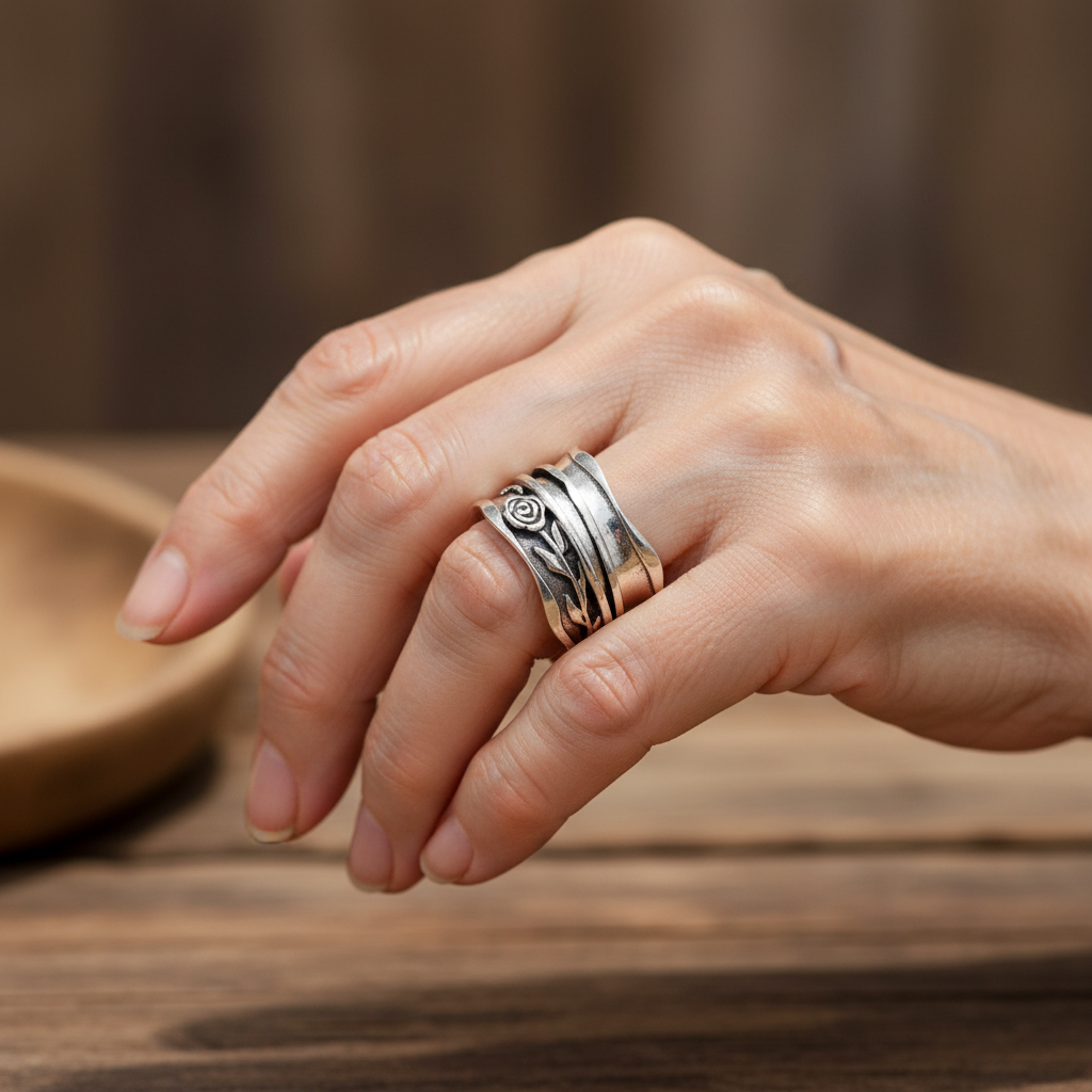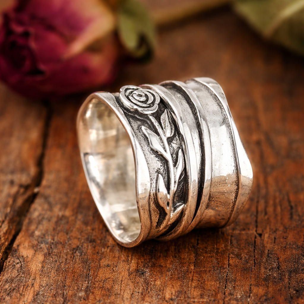 Retro stříbrný prsten květ