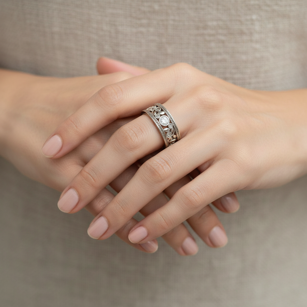 Retro stříbrný prsten zirkonie