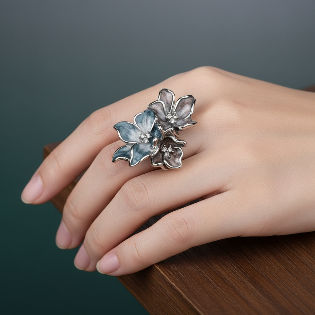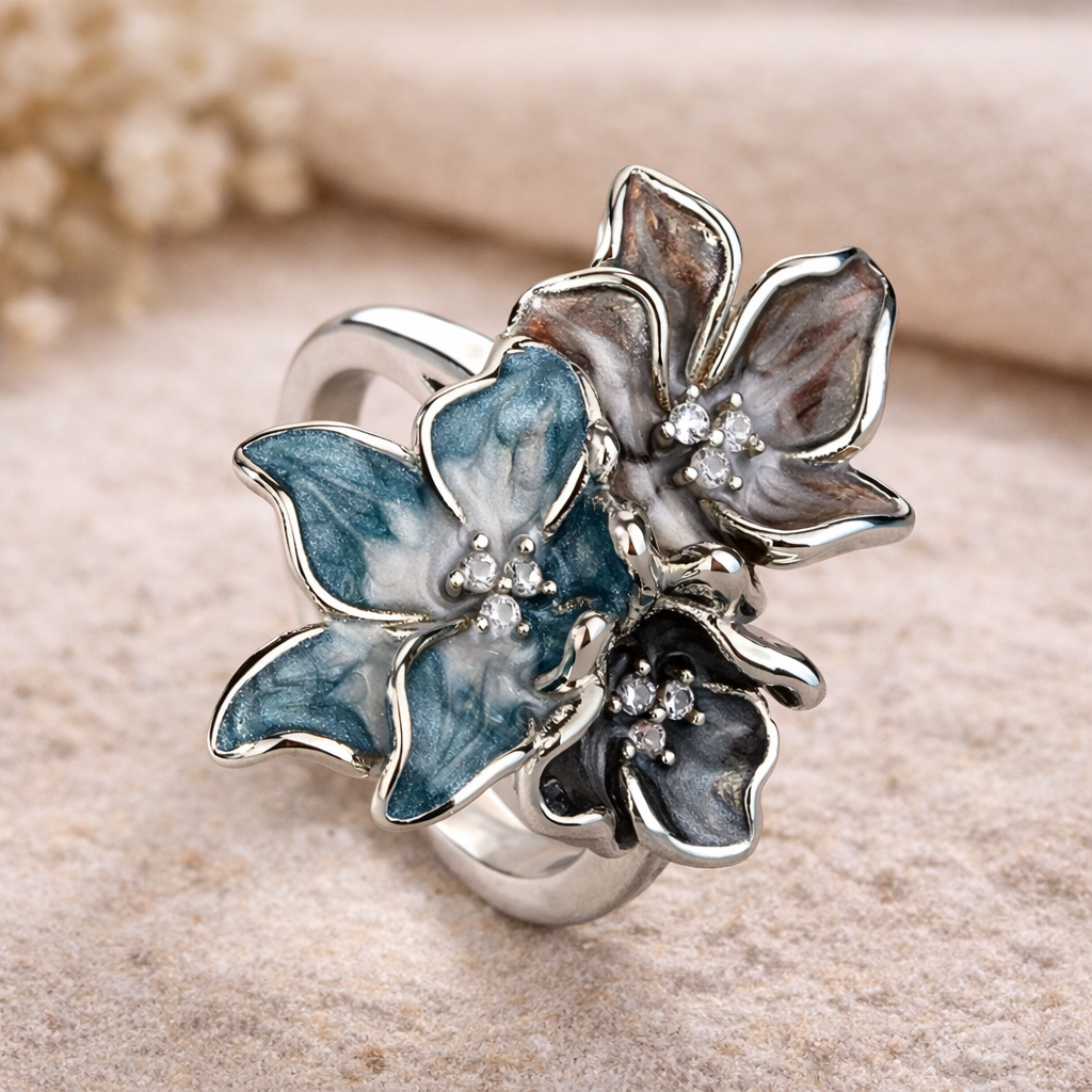 Stříbrný prsten exotická květina