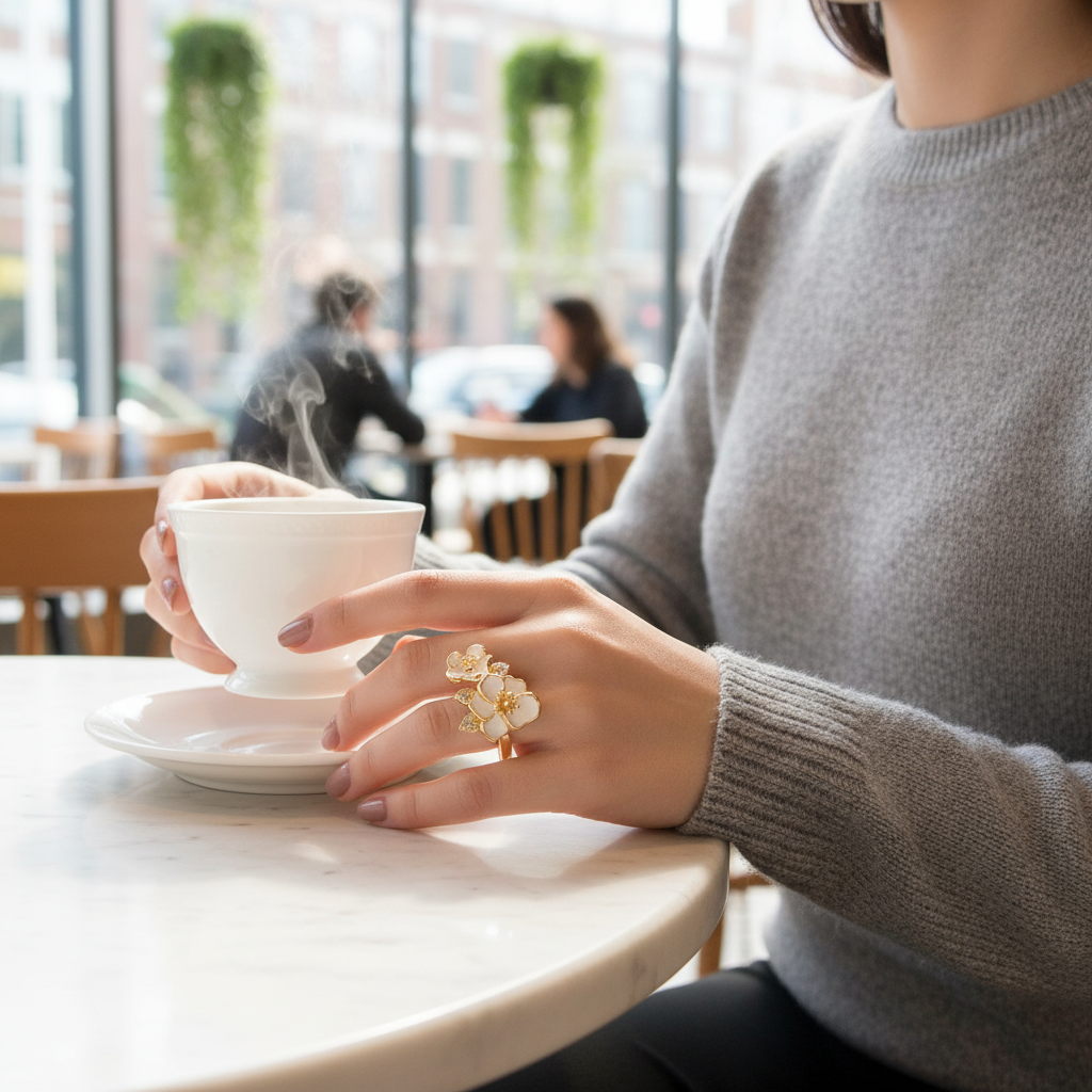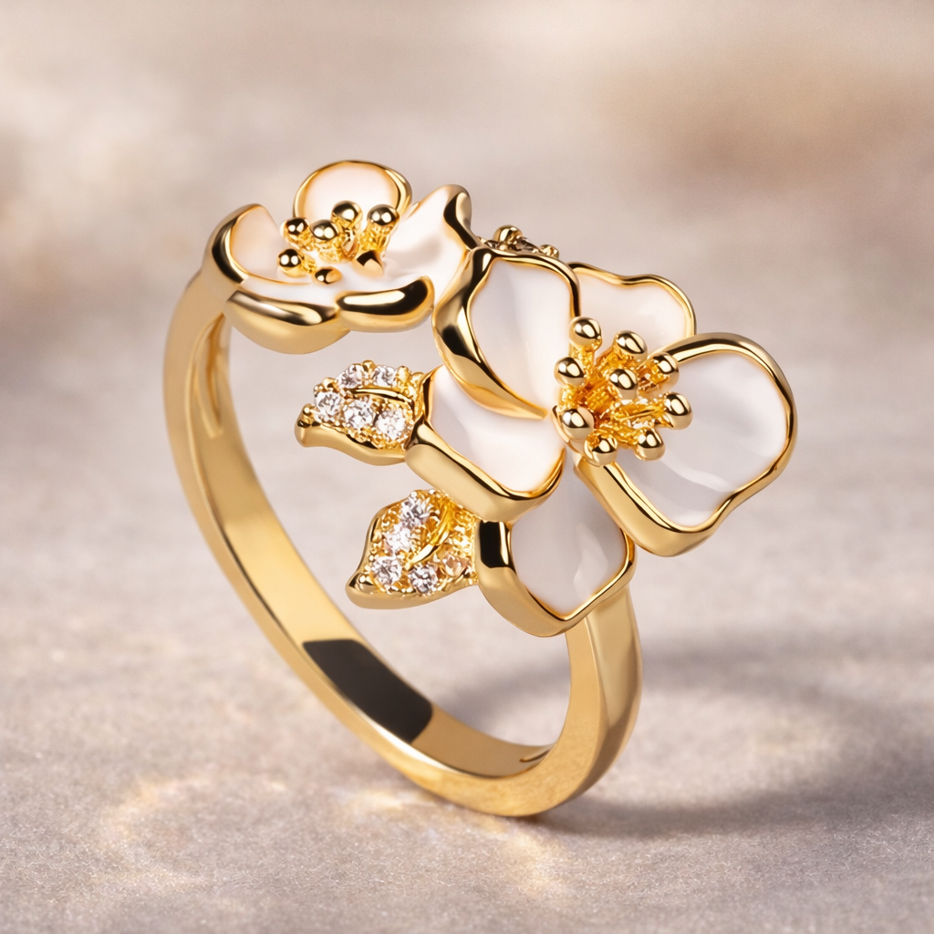 Zlatý prsten bílá květina